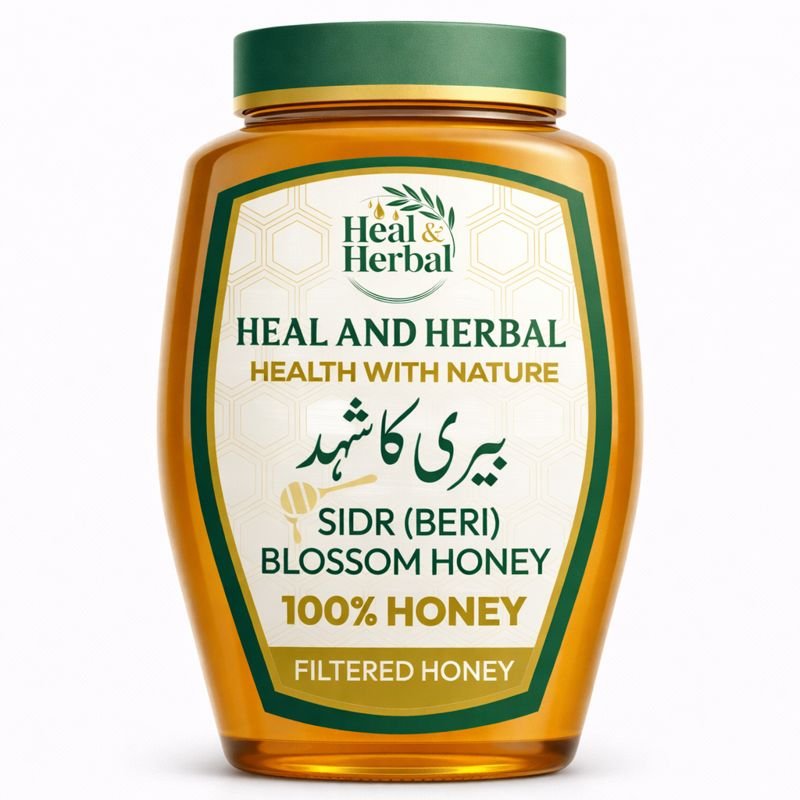 Heal and Herbal Sidr (Beri) Blossom Honey is 100% pure, premium-quality filtered honey sourced from Sidr tree blossoms. Known for exceptional health benefits including immunity boost, digestive support, and natural healing properties. Rich, luxurious flavor with deep amber color. Lab-tested and authentic.